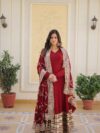 FABRIC & WORK Faux Blooming With Embroidery Zari Sequins-work