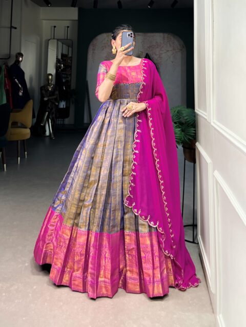 Be the first to review “Anarkali Gown Kanjivaram”