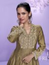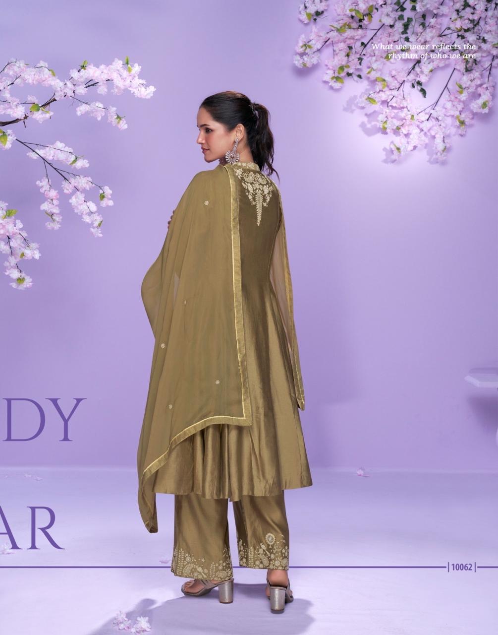 FABRIC REAL PREMIUM ROMAN SILK ( EMBROIDERED ROMAN SILK LONG CUT TOP WITH PLAZZO PANT AND EMBROIDERED ORGANZA DUPATTA )