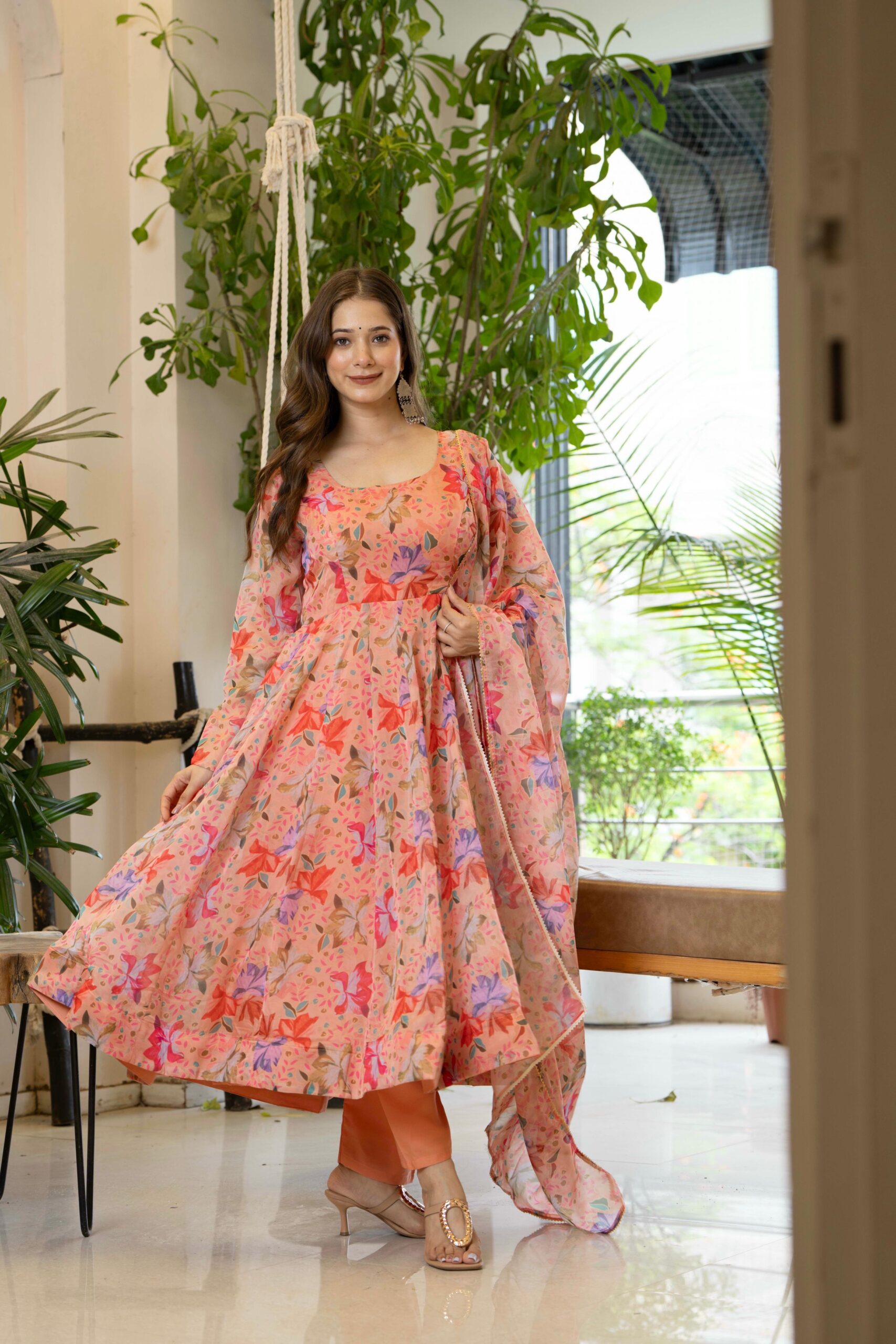 ANARKALI FABRIC PURE SOFT LIGHTWEIGHT ORGANZA FLORAL PRINT FABRIC INNER MICRO COTTON
