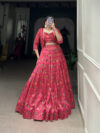 Lehenga Work Floral Print With Zari Border