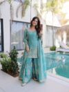 FABRICS & WORK Fendi Crush with Zari Sequins Embroidered work and Cutwork designer lace border.