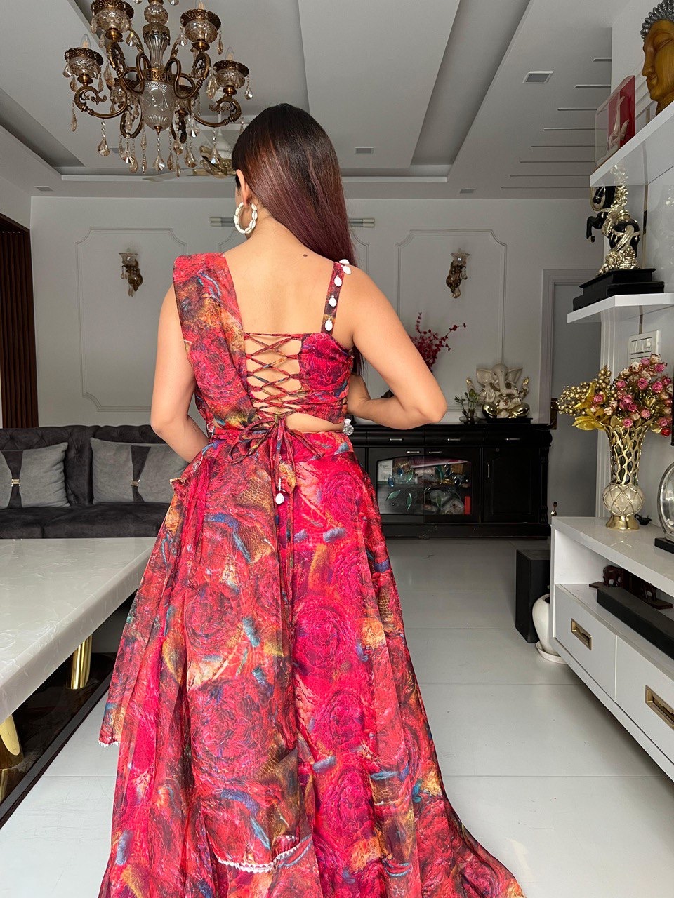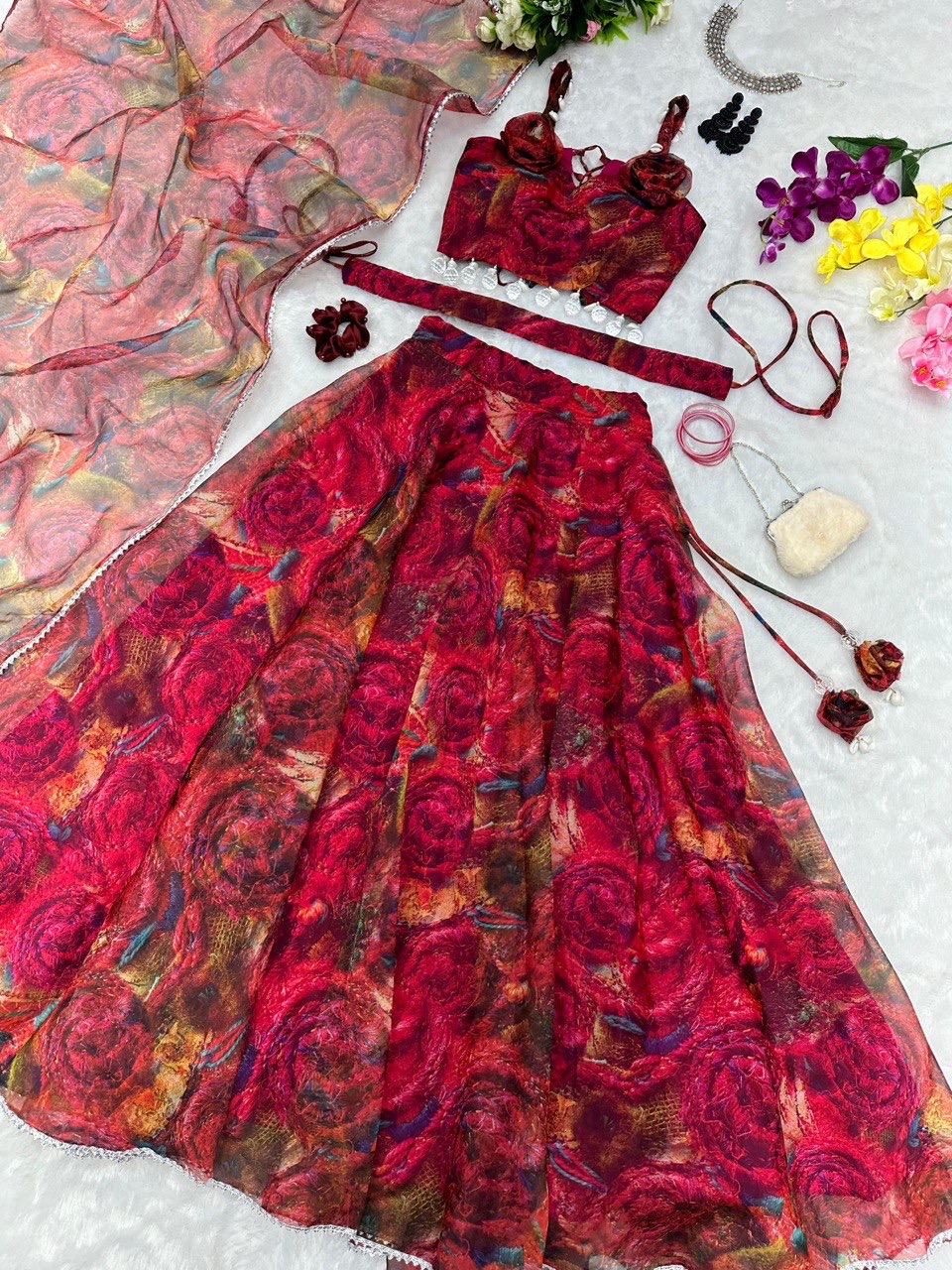 lehnga – Pure organza silk digital printed lehnga 8mtr flair lehnga with canvas patta 🌸