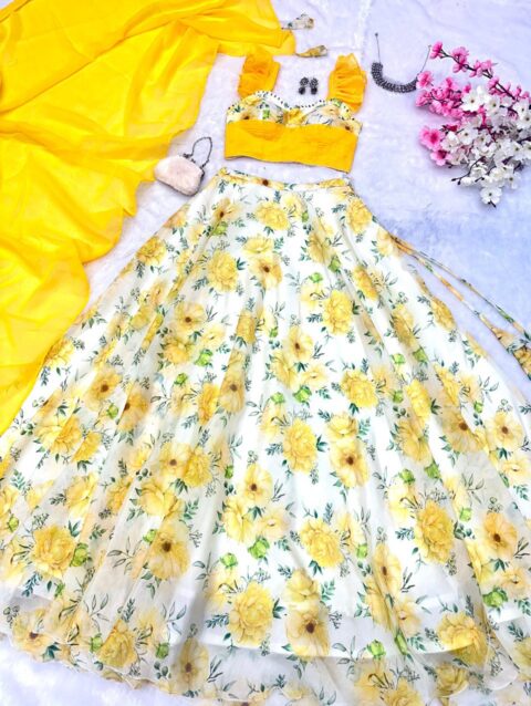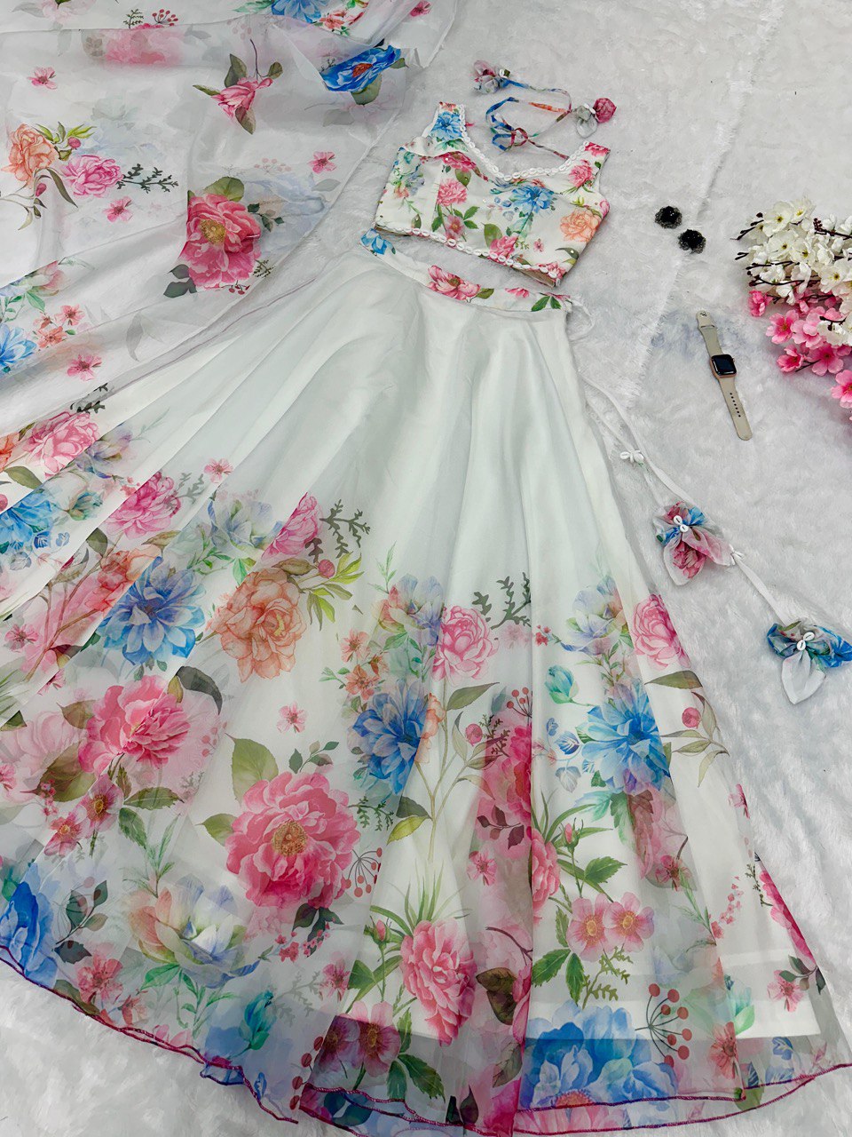 lehnga Pure organza silk floral printed lehnga . 8mtr flair lehnga with canvas patta