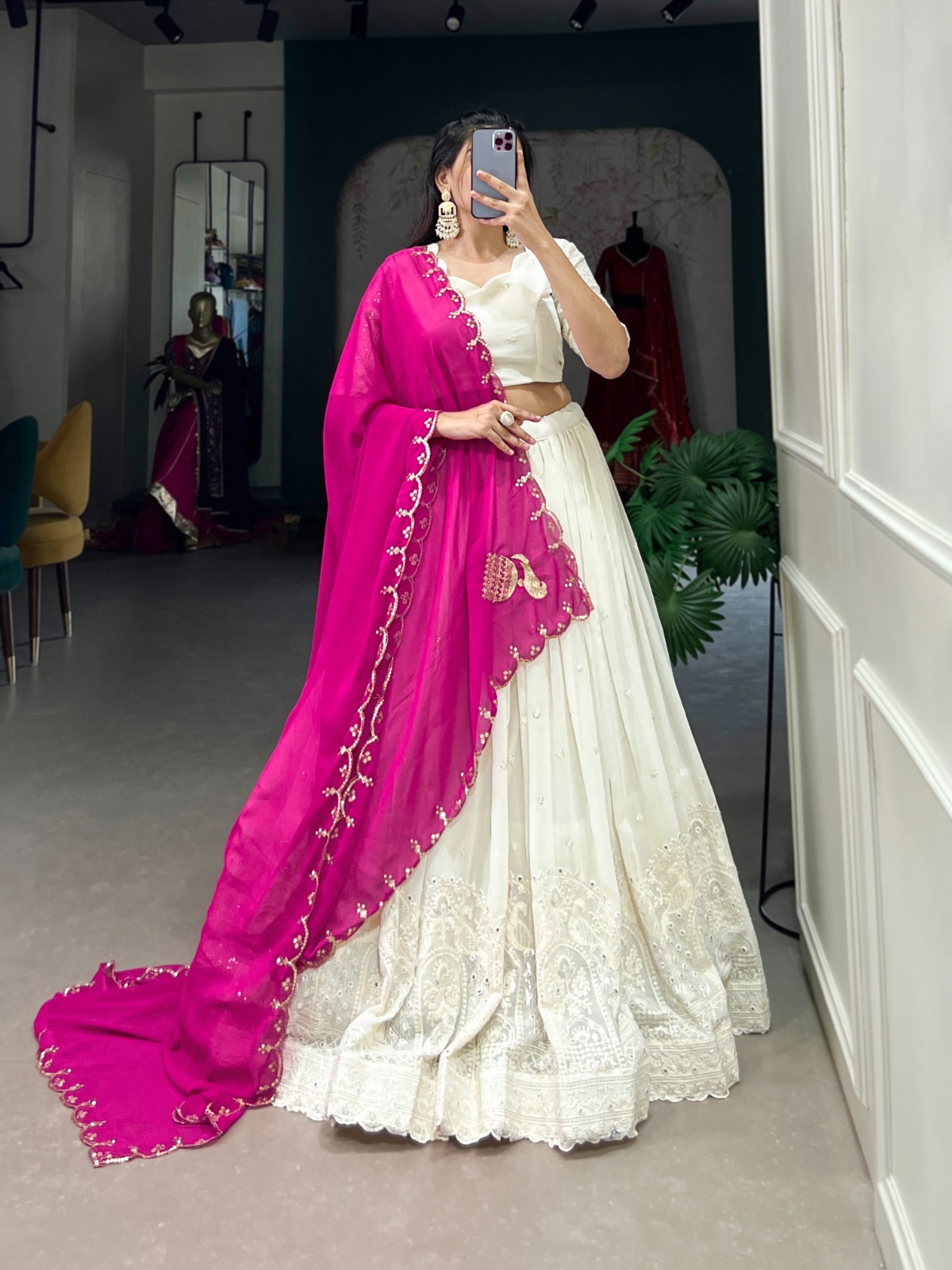 Lehenga Work Lucknowi Paper Mirror Work