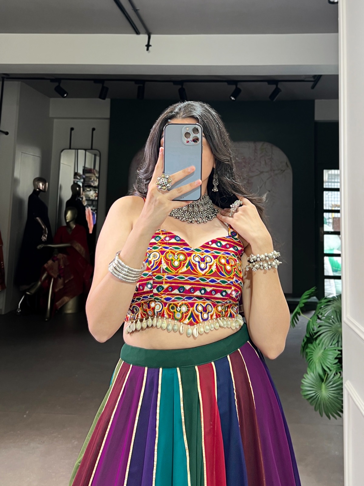 Blouse Work Real Mirror Gamthi Work With Cowrie (Kodi) Lace Touch Up