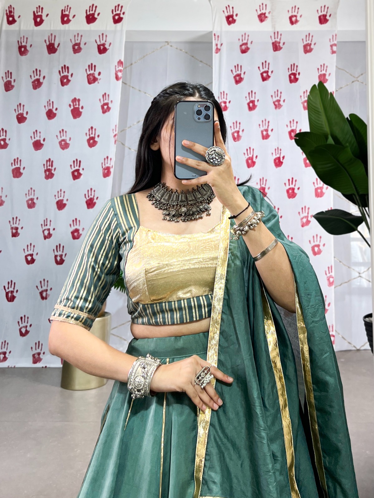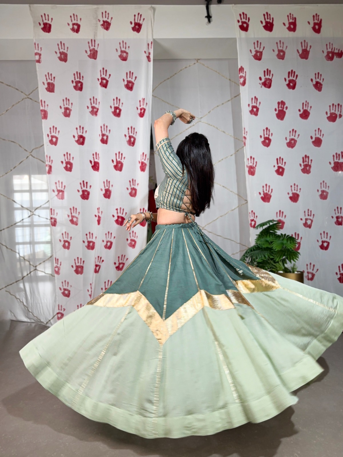 Lehenga Work Embossed Design And Gotta Patti Lace Touch Up