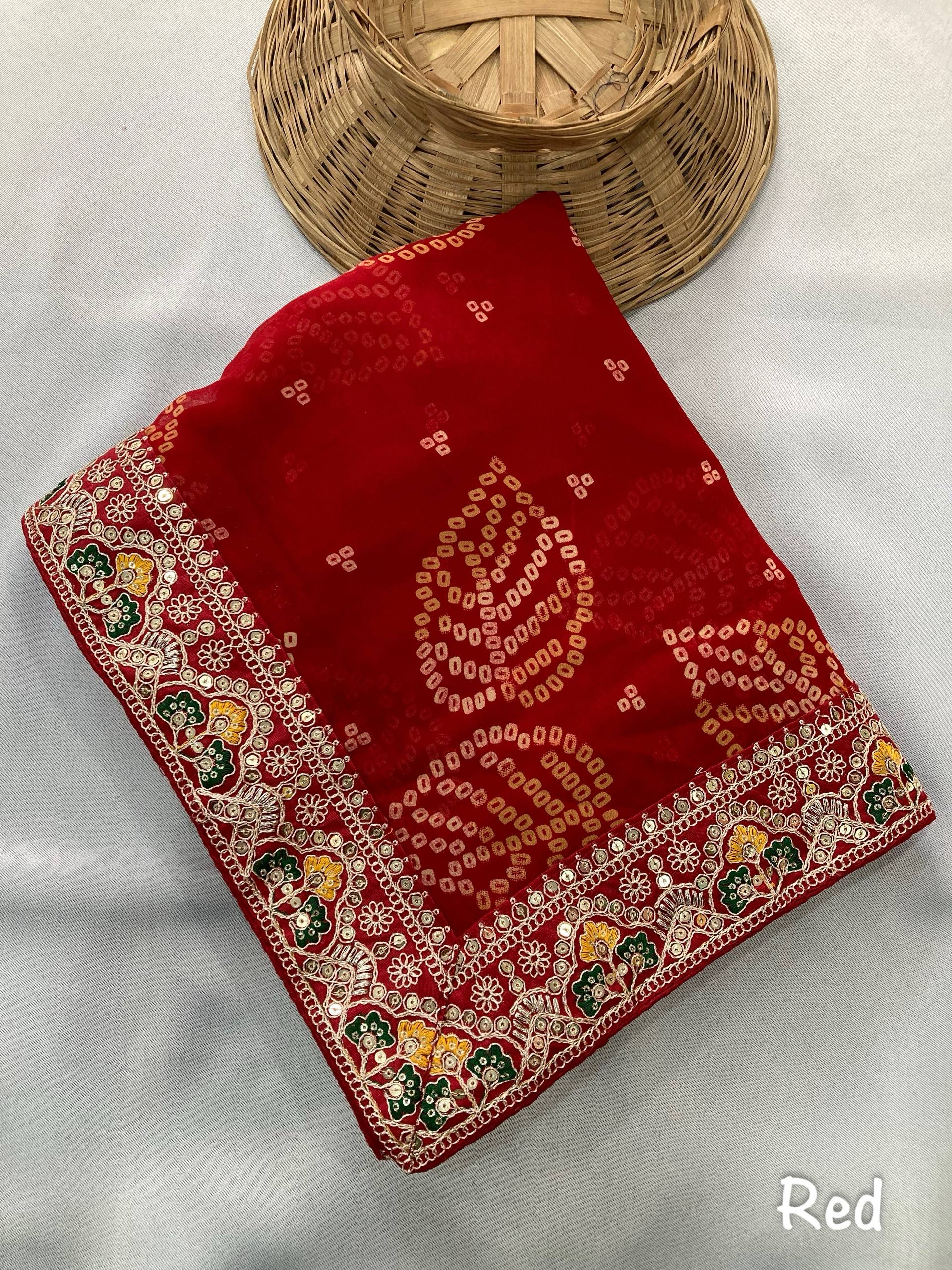 premium Soft Georgette fabric with bandhej print & Multi Embroidery lace Border and Heavy Embroidery Work border blouse Peice.