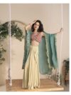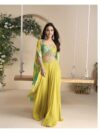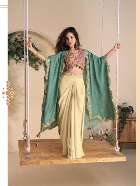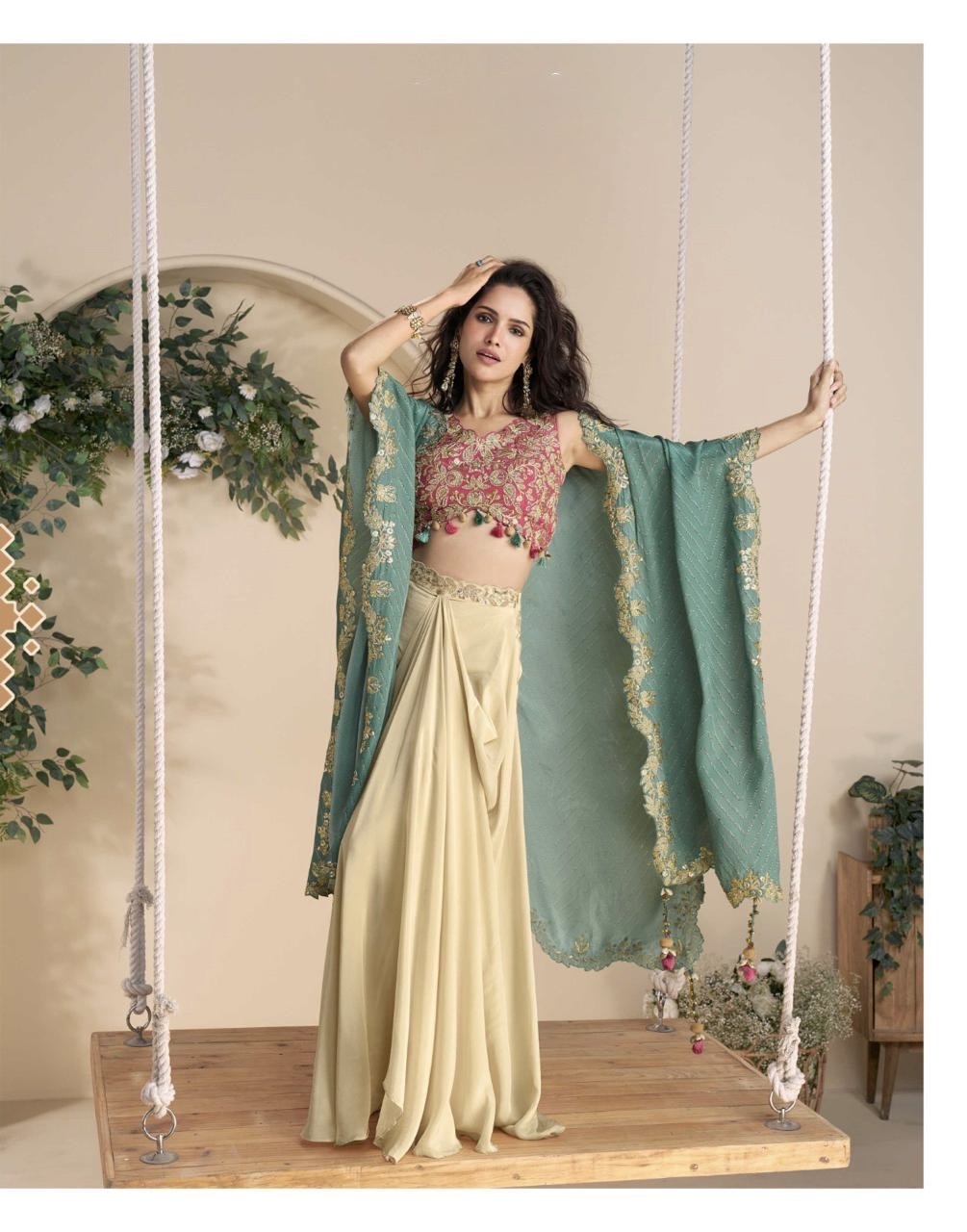 FABRIC PREMIUM REAL CHINON SILK ( HEAVY EMBROIDERED SHRUG WITH HAND EMBELLISHED WORK BLOUSE AND PLAZZO )