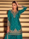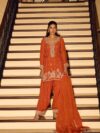 FABRIC PREMIUM CHINON SILK ( HEAVY LOOK BEADS EMBROIDERED TOP WITH FRONT AND BACK CHINON SILK BEADS EMBROIDERED SHARARA AND EMBROIDERED DUPATTA )