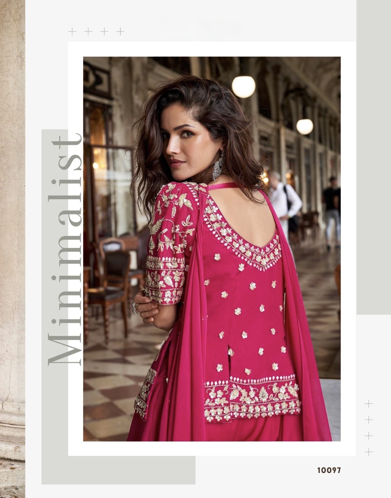 FABRIC – PREMIUM REAL ORGANZA SILK ( TREDY WEDDING LOOK FRONT AND BACK EMBROIDERED TOP WITH PLAZOO AND EMBROIDERED DUPATTA
